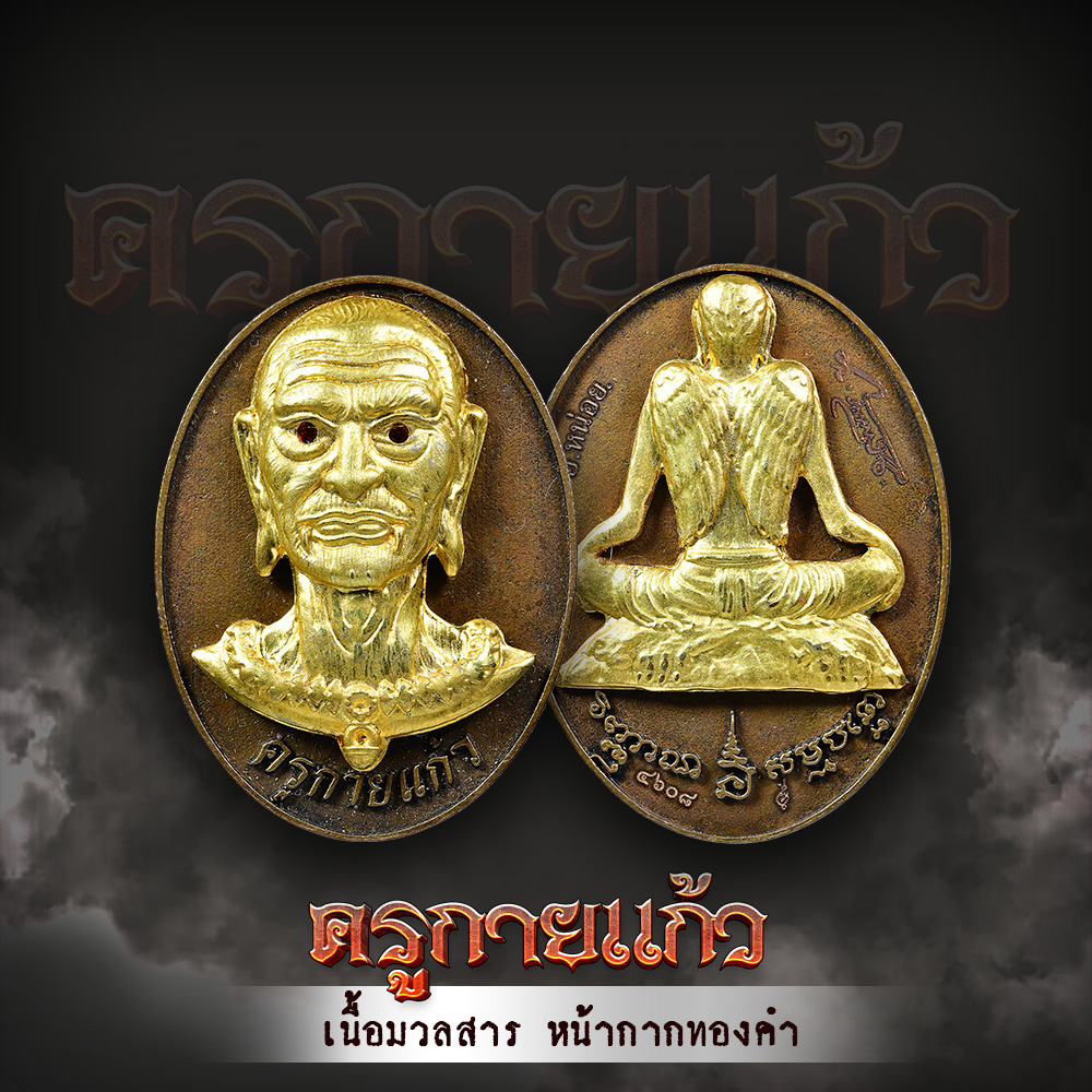เหรียญครูกายแก้ว เนื้อมวลสาร หน้ากากทองคำ